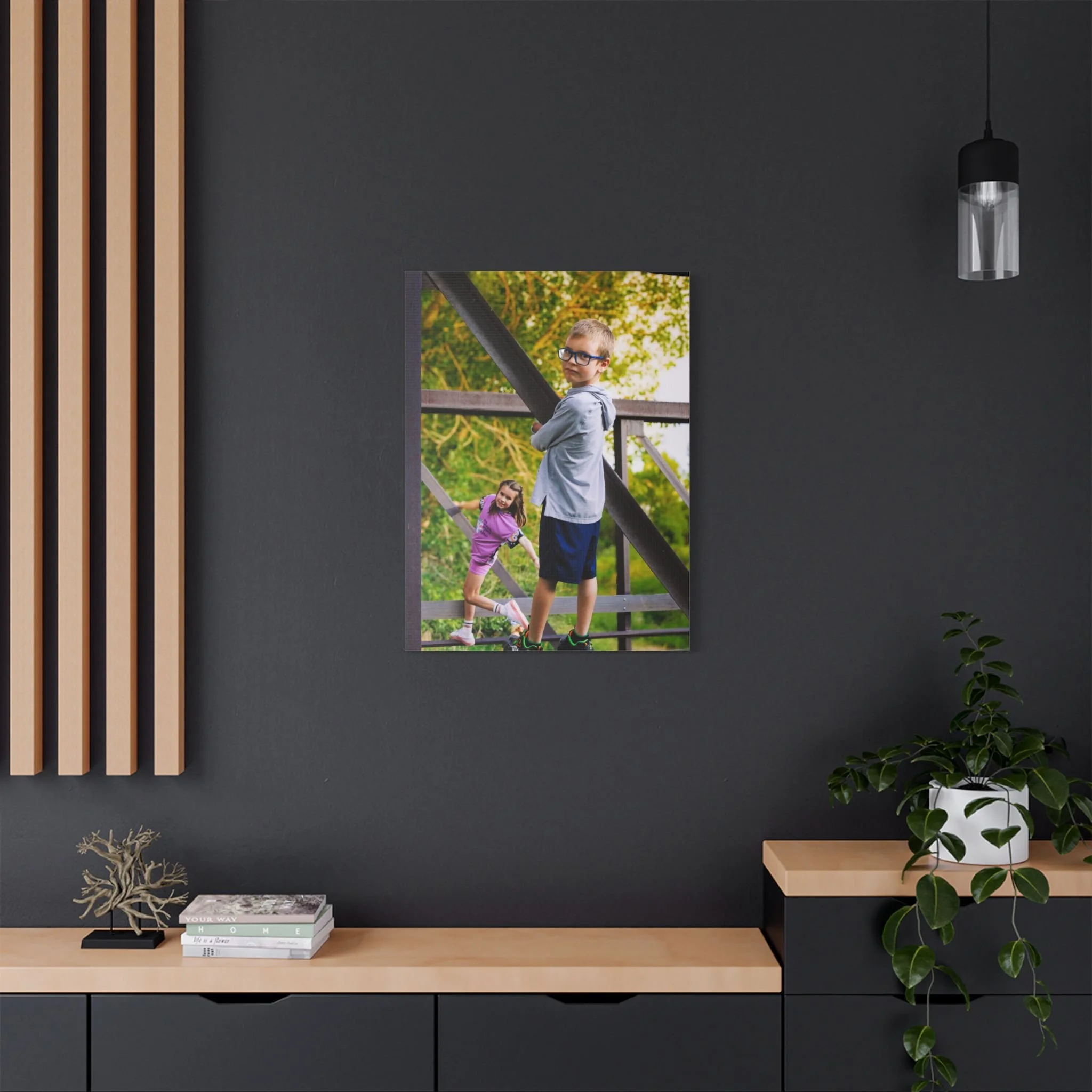 A warm, satin-finish stretched canvas that brings soft, sunlit moments to your walls. The silky 100% polyester surface enhances golden tones and skin details, giving portraits and nature scenes a luminous, almost photographic depth. Mounted on a sturdy wooden inner frame with metallic hangers for immediate display, this piece arrives ready to hang vertically or horizontally. It’s assembled in the UK with REACH-certified inks that hold color for generations, so the memory keeps its glow through daily life in living rooms, hallways, or cozy reading nooks.